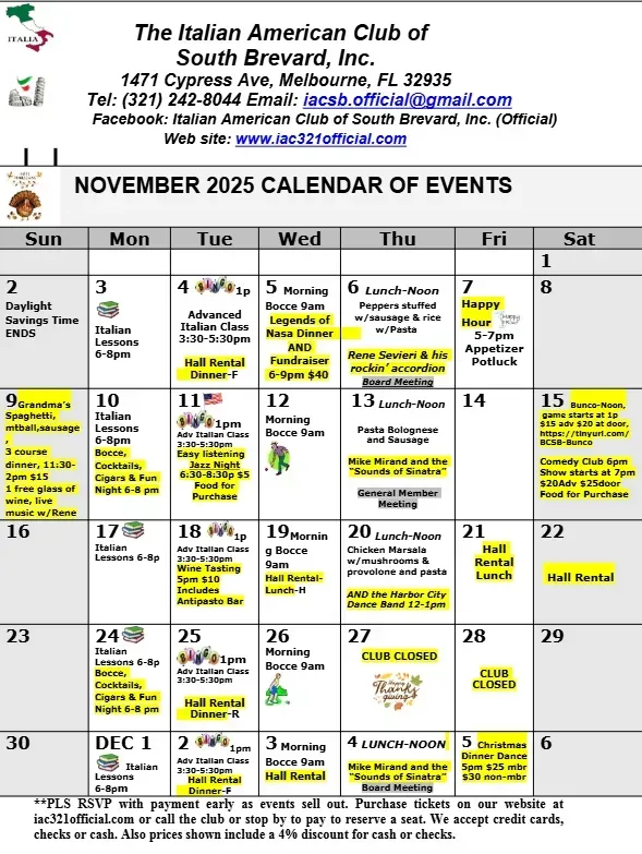Copyright © 2025. All rights reserved. Italian American Club of South Brevard