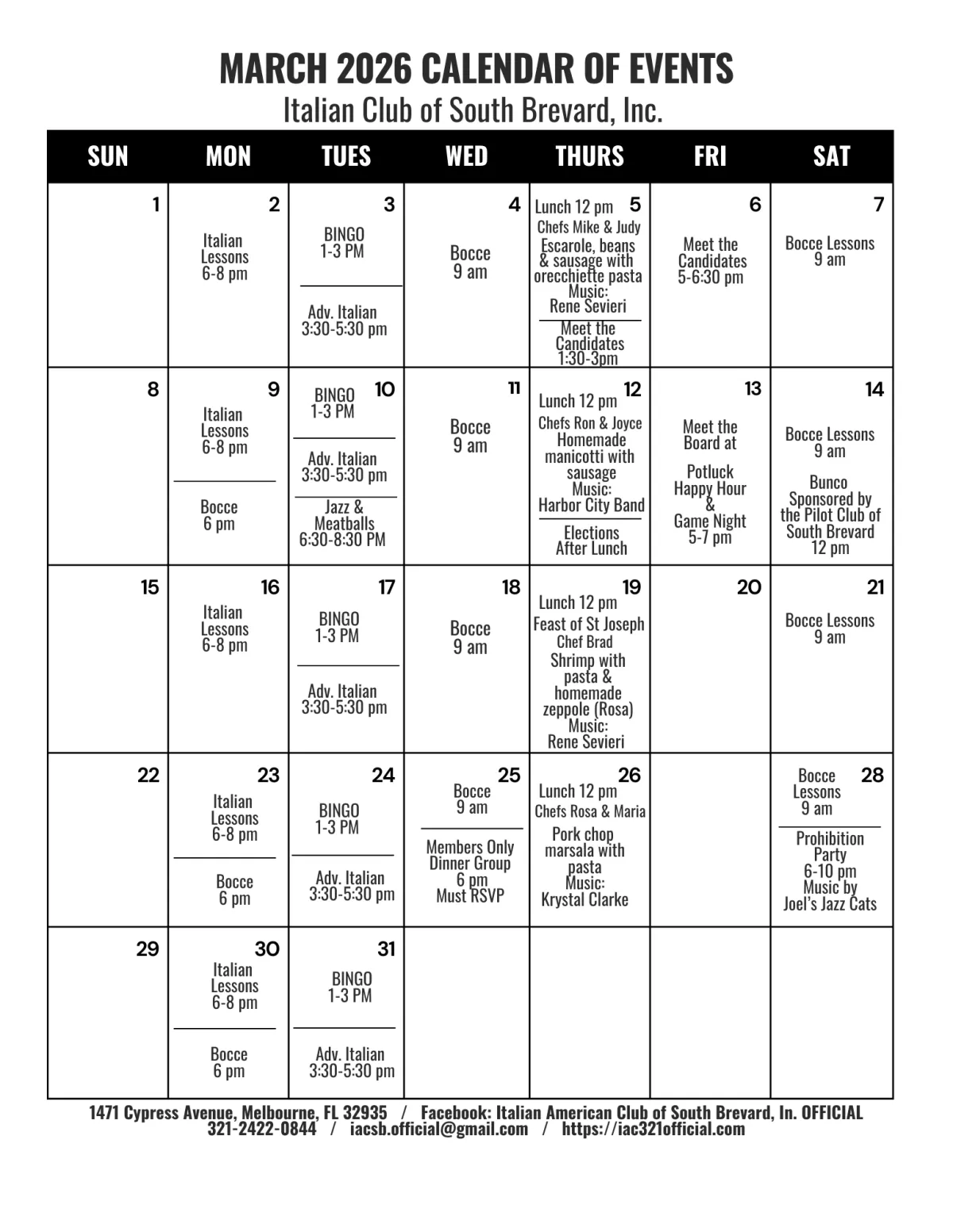 Copyright © 2026. All rights reserved. Italian American Club of South Brevard
