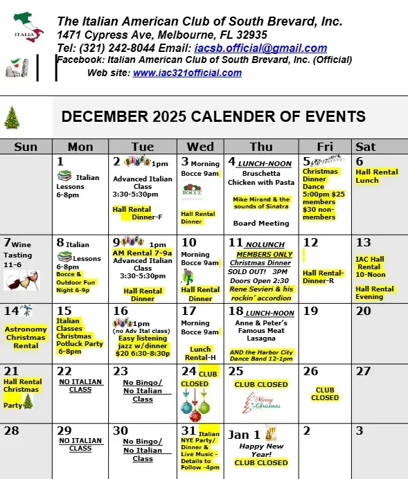Copyright © 2025. All rights reserved. Italian American Club of South Brevard